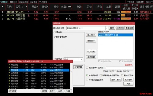 MALHJ专业版详细的视频讲解:引入,调用,预警,排序,选股等等功能讲解。点击直接观看: